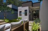 A fachada moderna e arrojada, com linhas retas e acabamentos contemporâneos, traz sofisticação e imponência à residência. A casa também conta com vaga  garagem descoberta e uma área de serviço.