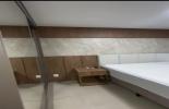 Piso porcelanato, gesso rebaixado e rodapés em poliestireno